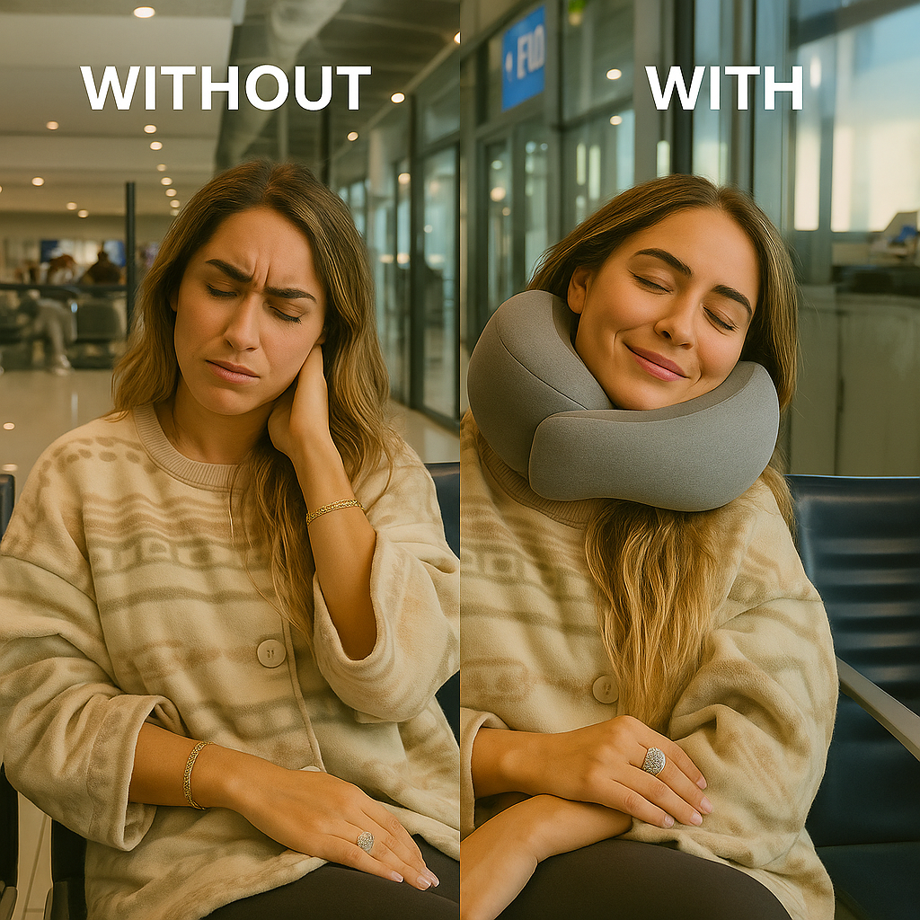 Ergonomic 360° Design – Prevents neck pain and supports your head in any position — ideal for sleeping upright.